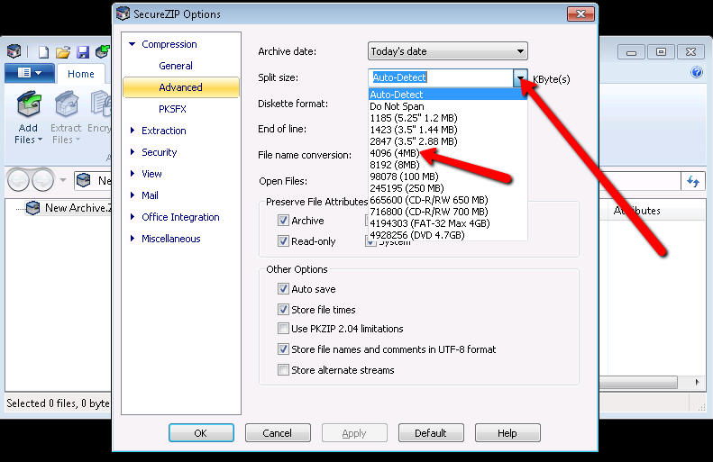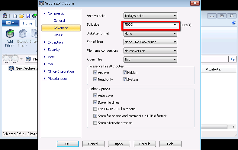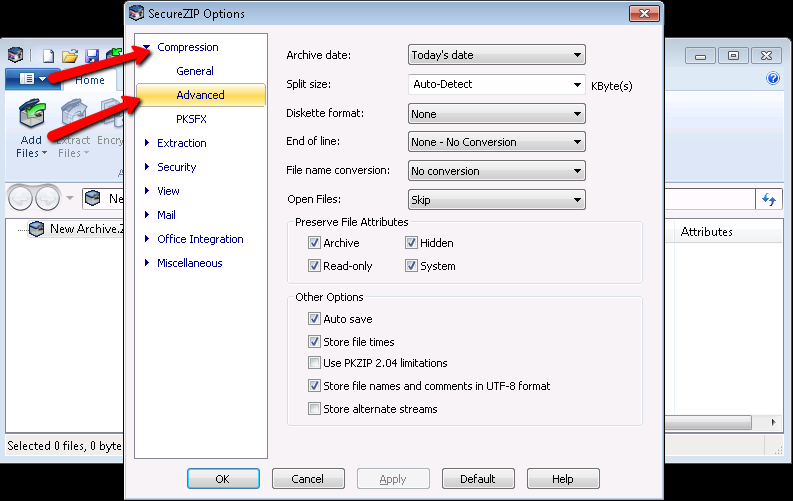 - Go into PKZIP/SecureZIP options