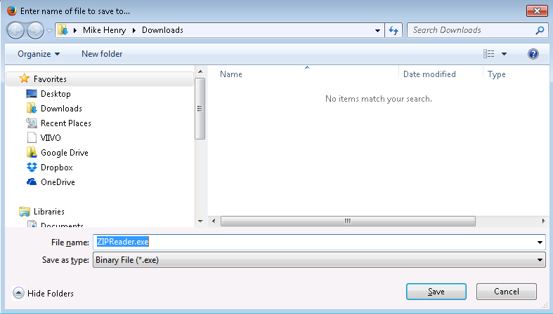 - Click on the downloads dropdown at the top right corner of FireFox and click on ZIPReader.exe